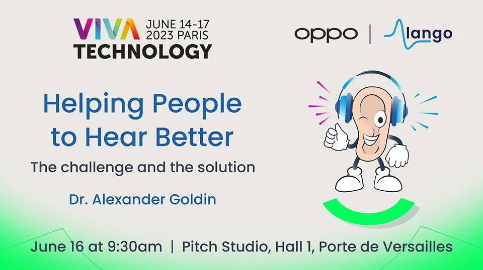 Last week, Dr. Alexander Goldin, the founder and CEO of Alango Technologies, delivered a captivating presentation titled "Helping People to Hear Better - The Challenge and the Solution" at VivaTech, Europe's largest start-up and technology event. Alango Technologies earned an invitation to the event as a result of winning the 2022 Inspiration Challenge organized by OPPO. In his presentation Dr. Alexander Goldin thanked OPPO and expressed his views on important issues related to helping people with hearing difficulties - what is the problem, what is the challenge, and what is the solution...